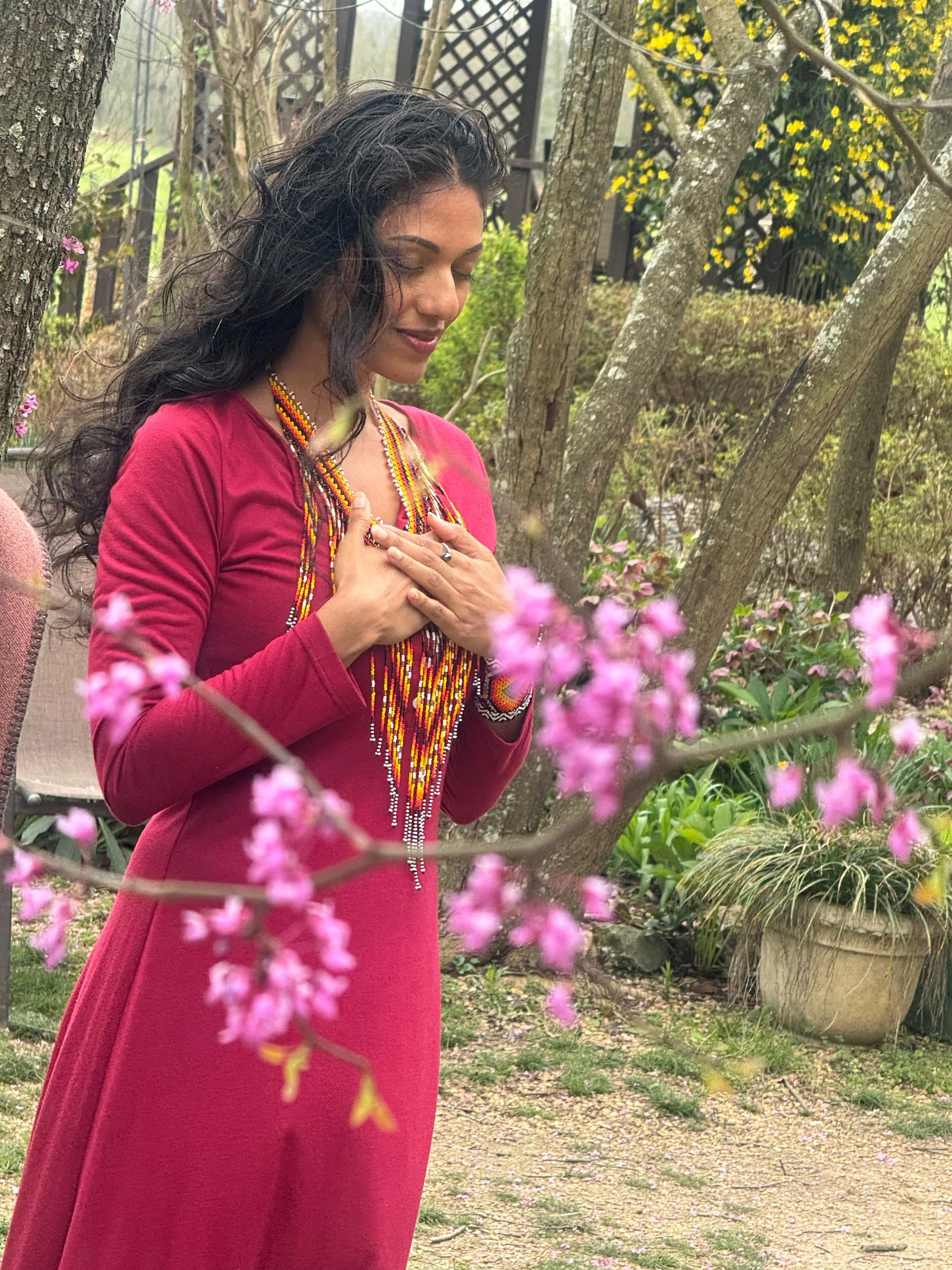 My approach integrates yogic pranayama lineage, somatic trauma-informed breathwork training, and relational attunement. Sessions are paced with consent, safety, and choice at the center. Nothing is forced. Your system leads